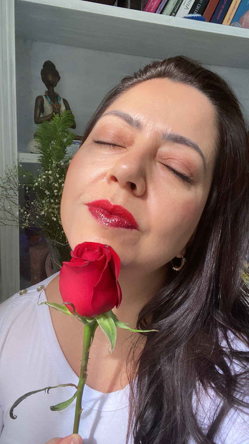 O batom líquido Luna Essência possui textura hidratante. Por se tratar de um cosmético natural, pode haver uma leve variação na cor.
